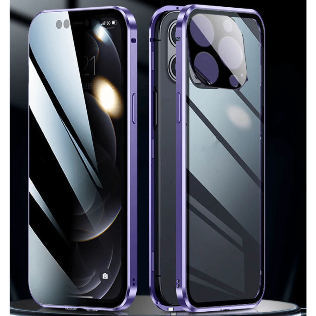 Vidrio templado con protección de 360 grados: Esta Funda Magnética para Teléfono está diseñado con protección de 360 grados y su amortiguador metálico resistente a los golpes protege su teléfono desde todos los ángulos. El vidrio templado es resistente a los arañazos, lo que mejora el diseño original del teléfono, haciéndolo siempre protegido y prístino.